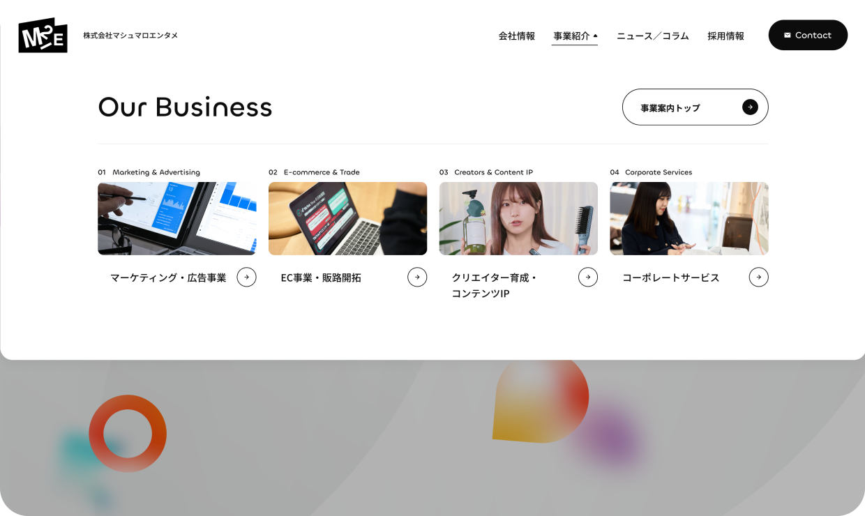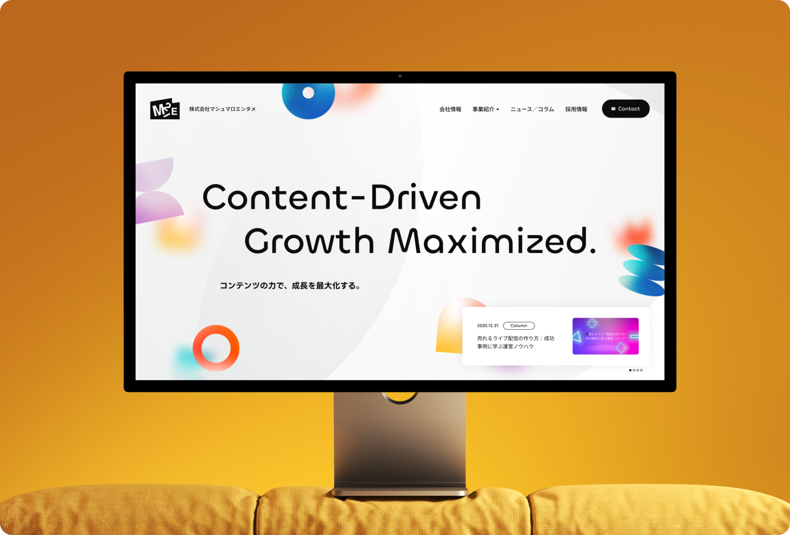 インフルエンサーマーケティングからコンテンツ制作、広告運用、メディア企画、コミュニティ運営までを包括的に対応している、株式会社マシュマロエンタメ様のホームページリニューアルを対応させていただきました。